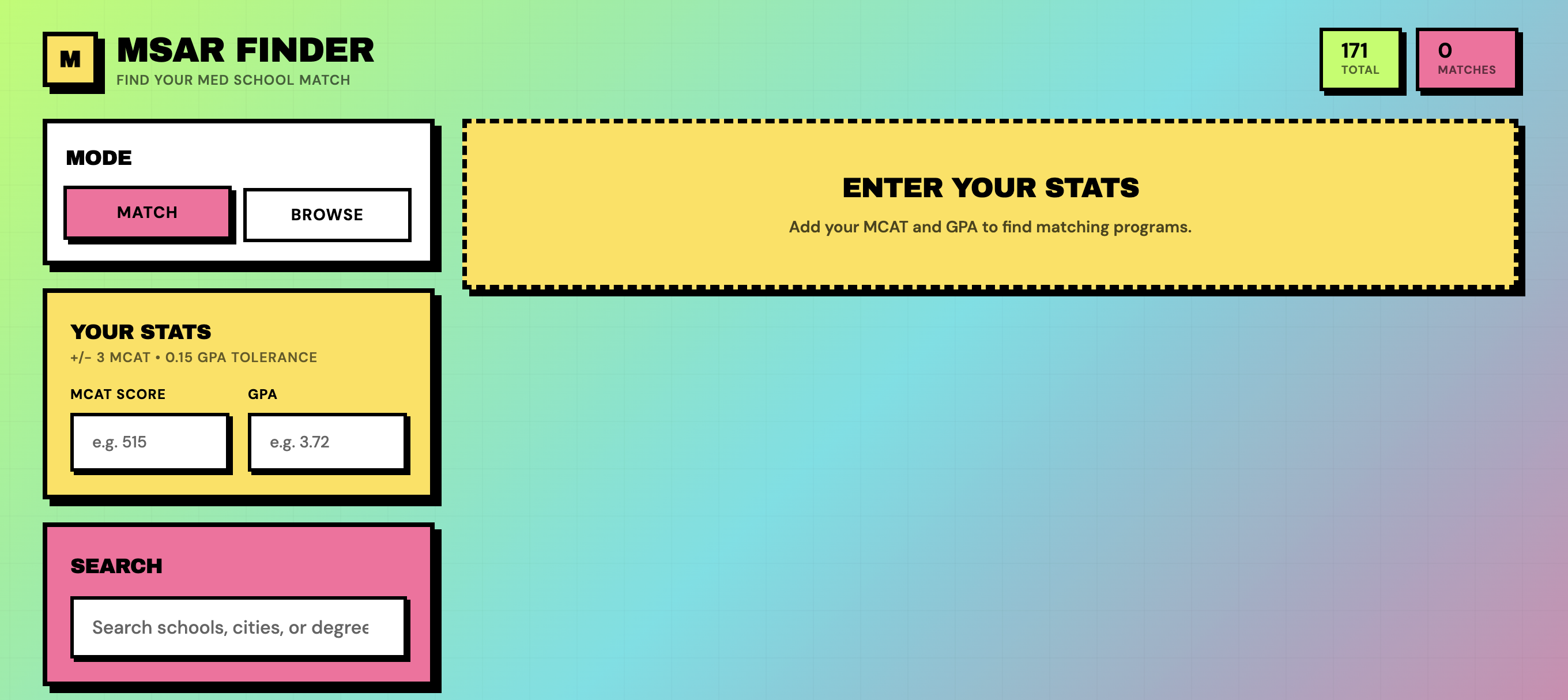 Medical school matching tool for MD schools based on GPA and MCAT scores