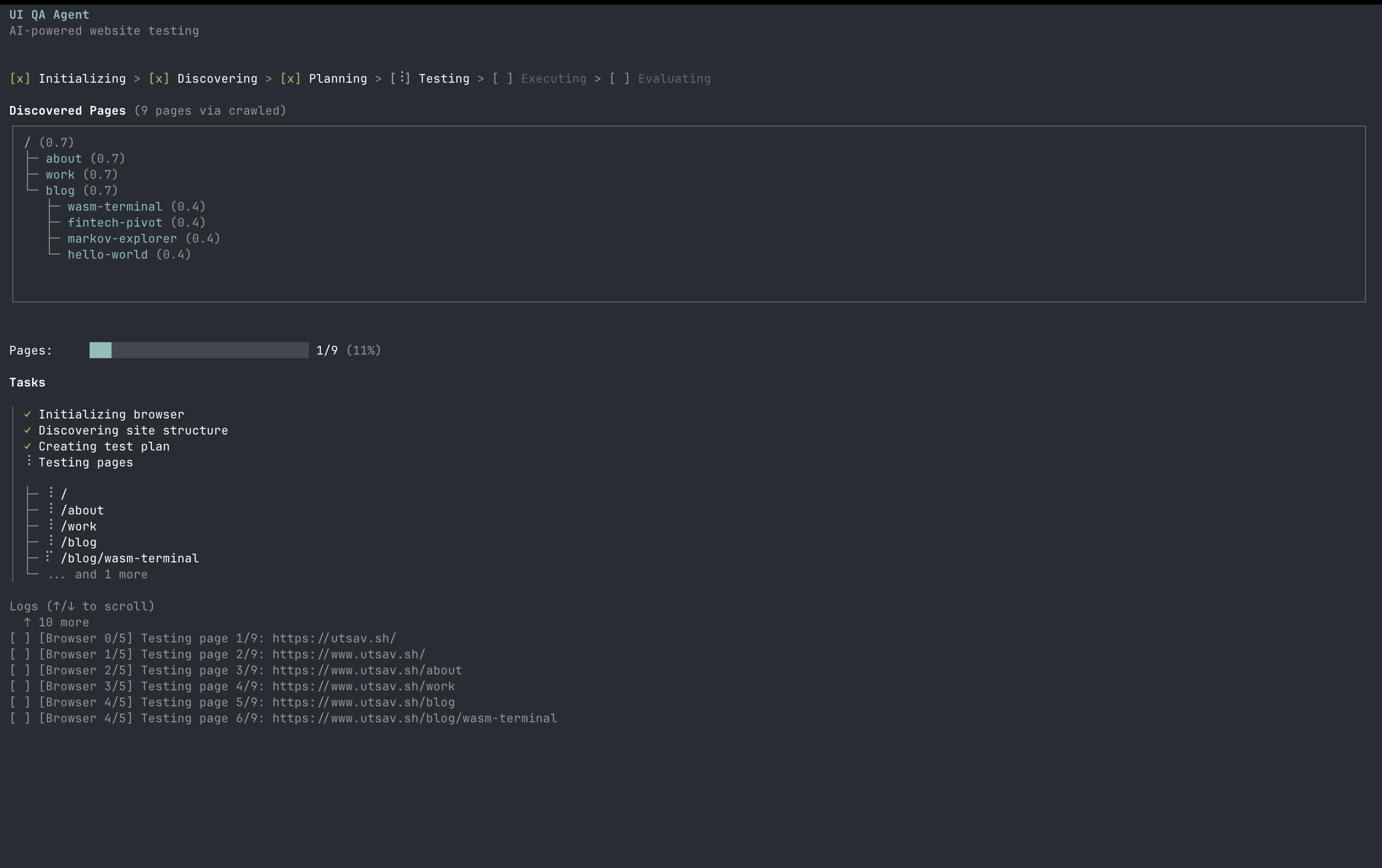 AI-powered terminal UI that tests websites using browser automation and LLM analysis